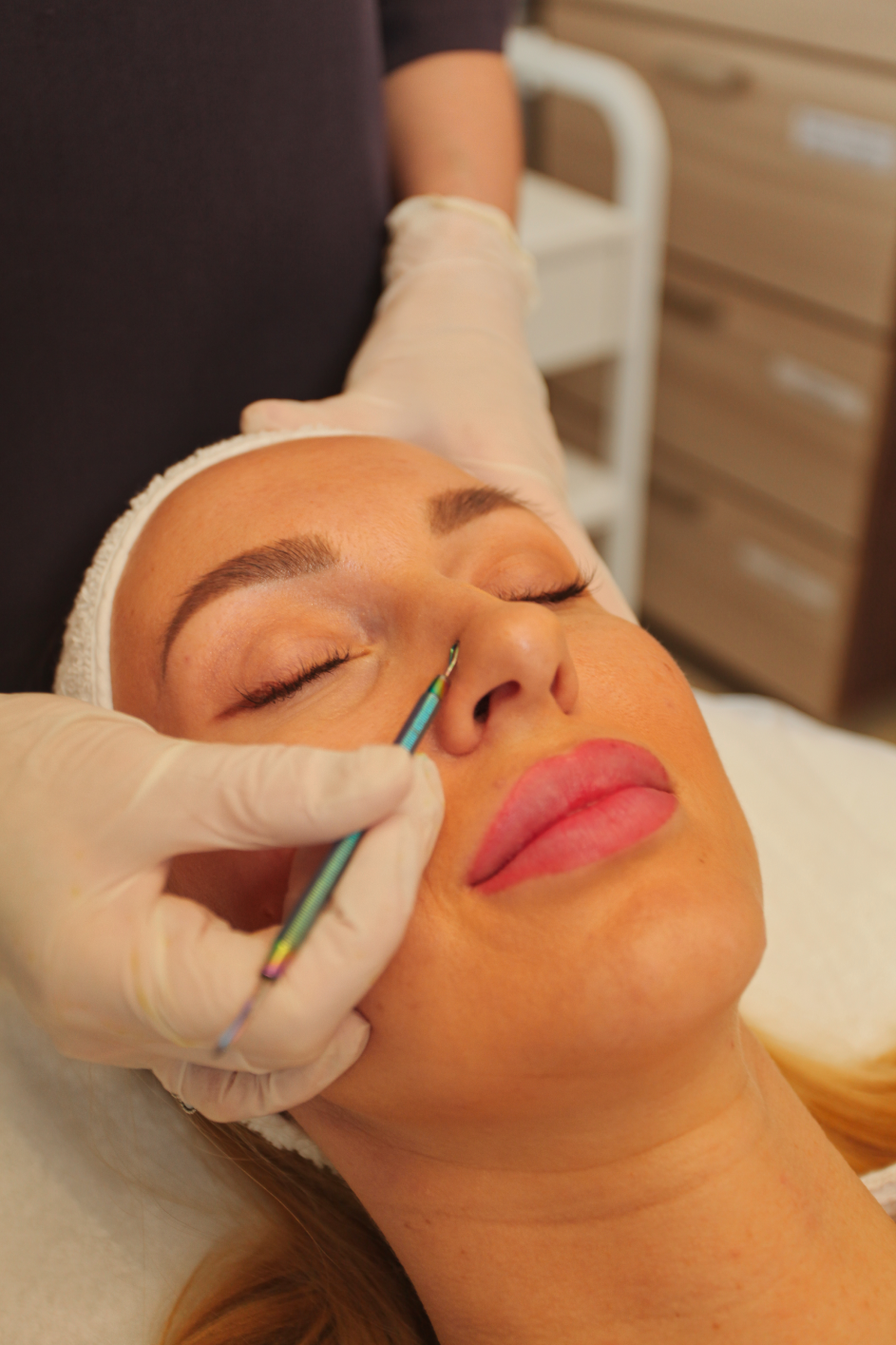 Классический метод: мастер вручную удаляет загрязнения и чёрные точки. Эффективно при жирной, проблемной коже.